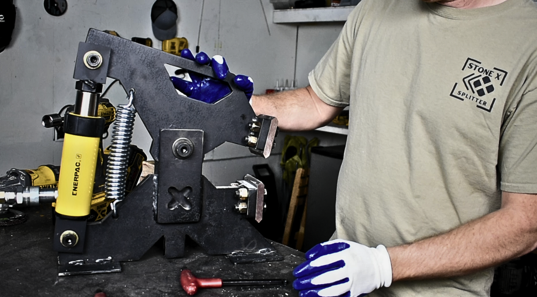 Over the past three years, we’ve done extensive field testing, refining the materials and tweaking the design. (You could call it tinkering, trial and error and we just like inventing and improving things). We regularly took feedback from masons all over. Our biggest mistake was trying to make a lower cost version, with a cheap hydraulic pump. The Enerpac Electric Hydraulic Pump we use now is a big part of the cost, but it’s worth it for the longevity. The cheap pumps would only last 6 months to a year, where now our pumps— as well as our StoneX Splitter are known to last for many, many years. (And save your back in the process.)