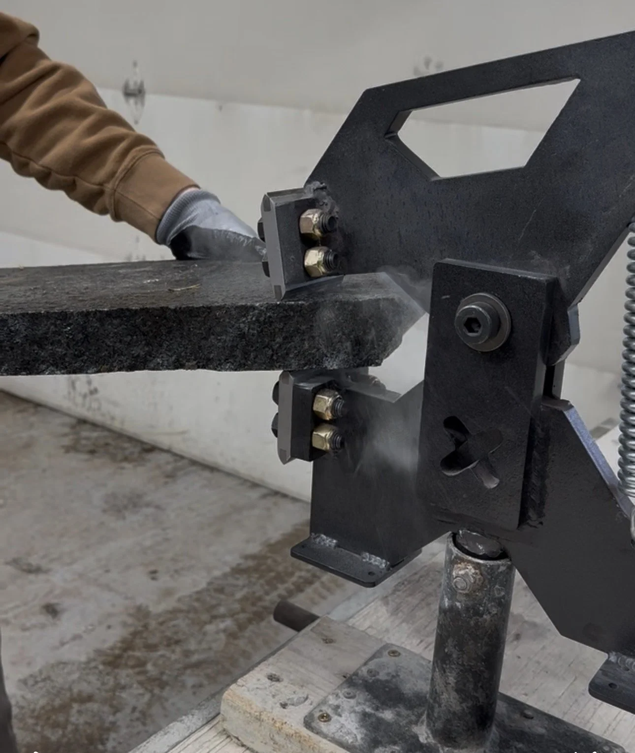 Electric hydraulic stone splitters eliminate the primary source of airborne silica by removing grinding and sawing from most production cutting.